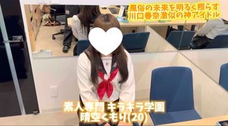 完全業界未経験。このクラスの国宝アイドル系素人さんが、風俗の世界で働く時代になったのか....。「恐れ多いんですけど、川口春奈さんに似てるってよく言われます...。」面接で発してくれたこの言葉に嘘偽りのない超SSSS級天使系アイドル美少女【晴空くもり】ちゃん(20)が、この岡山風俗業界の未来を明るく照らす事になる。もはやキラ学ファンの皆様から予約殺到が止まらなくなる程の「極上原石」だ。普段は地元居酒屋の看板娘としてアルバイトをしていたり、趣味で被写体モデルをしていたり、アイドルの追っかけをしていたり「普通の女の子」として一度きりの人生を謳歌している。そして彼女はこれから、この風俗という世界で《唯一無二の国民的アイドル》へと成長していく。彼女の初めてがここキラキラ学園で良かった.....ファンの皆様が歓喜する、最高の瞬間をどうぞお楽しみ下さいませ。